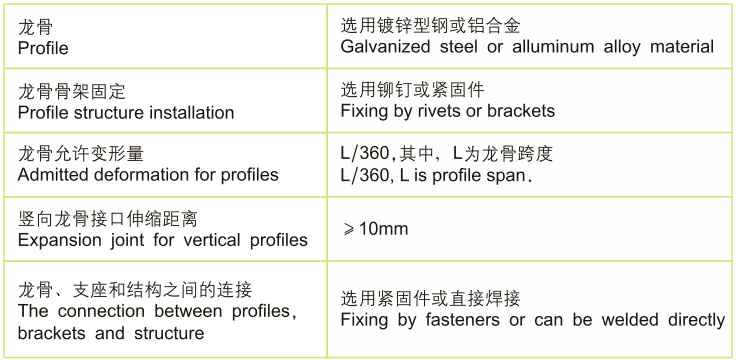 1.通过各项力学计算,包括风荷载、地震荷载、龙骨受力、固定件受力等,确定龙骨、紧固件的尺寸规格、间距及安装方式;
