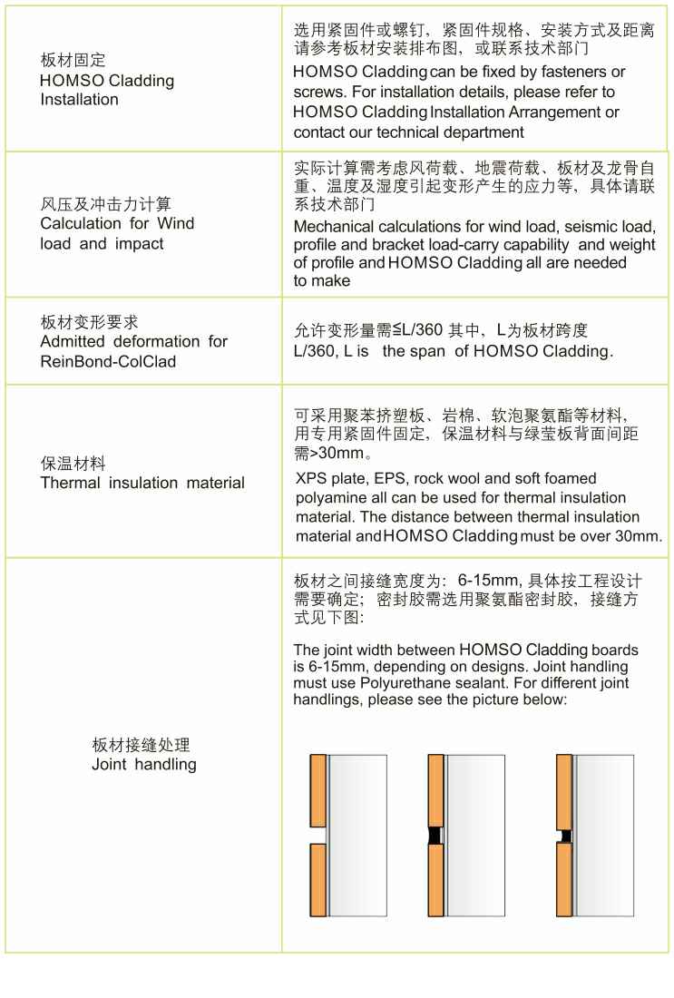 板材安装可横向排列,也可纵向排列,每张板四个角为应力释放点,其余为固定安装点,应力释放点钉
